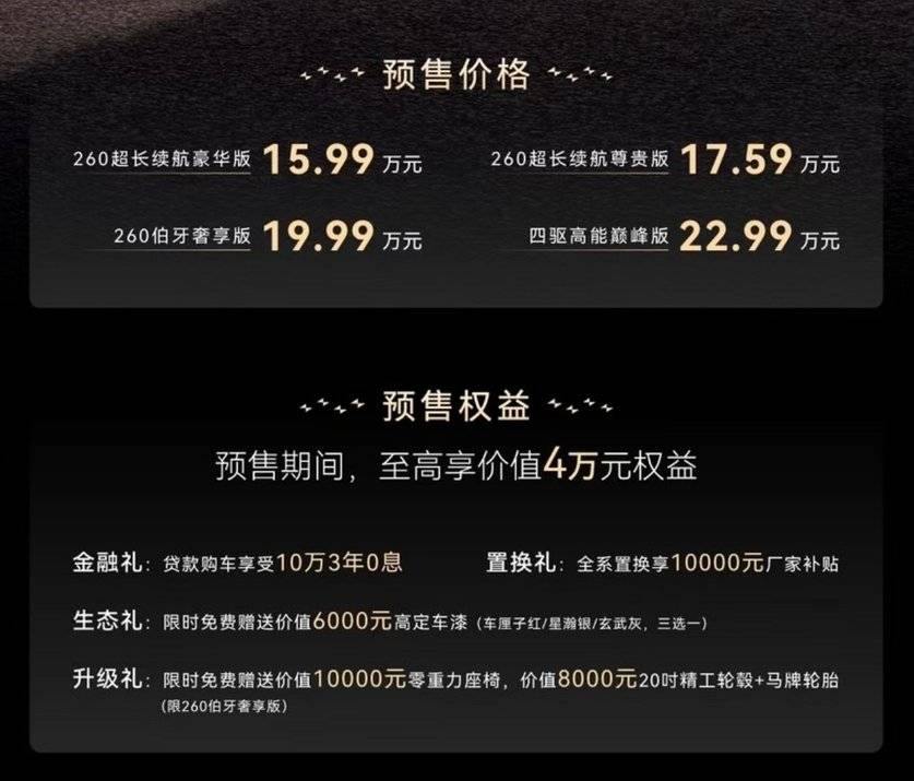 值得一提的是,同步推出的至高 4 万元预售权益更是直击用户痛点:10 万 3 年 0 息金融政策降低购车门槛,1 万元置换补贴助力消费升级,限时赠送的高定车漆与零重力座椅等配置,直接将豪华体验拉满。这种 “顶配下放” 的定价策略,让原本需要 30 万 + 才能触及的 C 级豪华体验,如今以不到 20 万的价格即可拥有,形成对传统豪华品牌的降维打击。