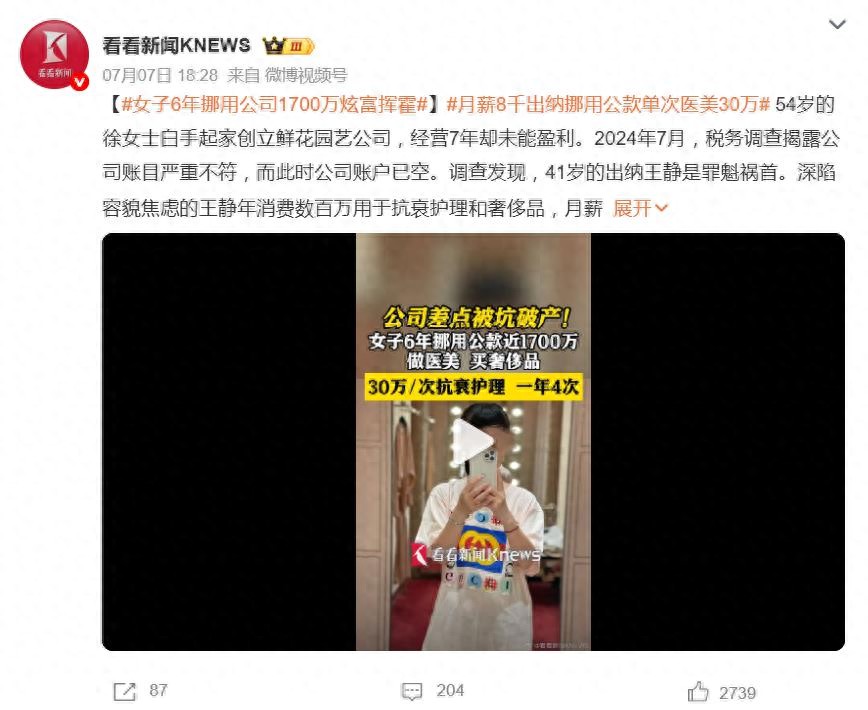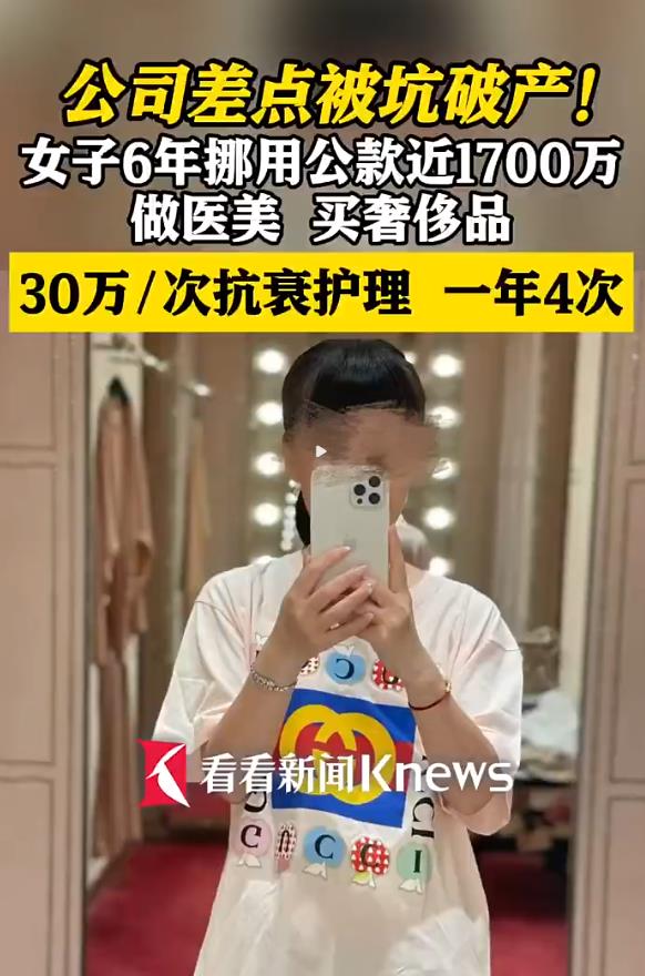 从此,公司账户成了她的“私人提款机”。6年间,她疯狂转账近1700万元,其中:深陷容貌焦虑的王静,沉迷天价医美和奢侈品,单次护理消费堪比普通人半年工资;挪用资金输红眼后,她竟用“拆东墙补西墙”的方式,偶尔转回小额资金维持公司运转,只为继续掏空账户;编造谎言诈骗熟人钱财,彻底沦为“全员恶人”。