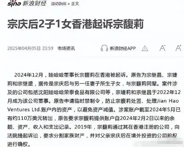 宗氏三兄妹与宗馥莉之间的矛盾由来已久,此前也曾有相关的经济纠纷传闻。此次诉讼的启动,标志着这场家族内斗进入了新的阶段,也预示着未来可能还会有更激烈的法律博弈。