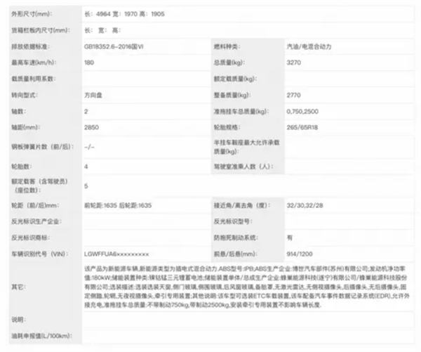 再看 Hi4-Z 版本,其动力系统更为强大,与坦克 500 Hi4-Z 相同,采用 2.0T 发动机搭配 P2、P4 双电机,配备 3 挡 DHT 加无级变速箱。发动机最大功率为 185 千瓦,峰值扭矩达 380 牛・米,两个电机的最大功率分别为 215 千瓦和 240 千瓦。电池组容量为 59.05 千瓦时,CLTC 工况下纯电续航里程可达 200 公里。亏电状态下,百公里油耗为 8.3 升,略低于 Hi4-T。