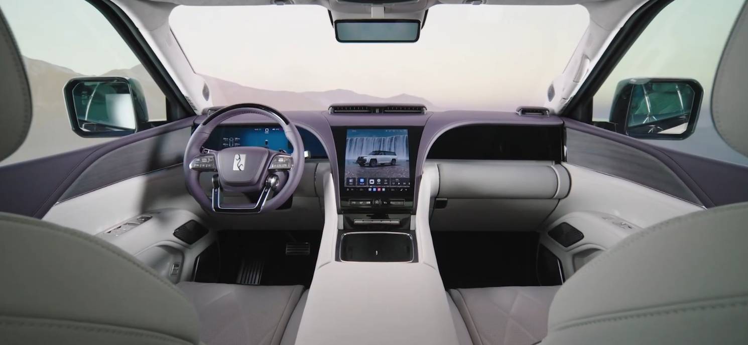 内饰方面,新车发布了紫灰以及黑棕两款内饰配色,中控区域与仰望U8保持一致,配备23.6英寸液晶仪表屏+12.8英寸中控屏+23.6英寸副驾娱乐屏。官方介绍,方向盘中心的车标也可选配24K黄金logo。车内应用了大量的实木材料,有着不错的质感。