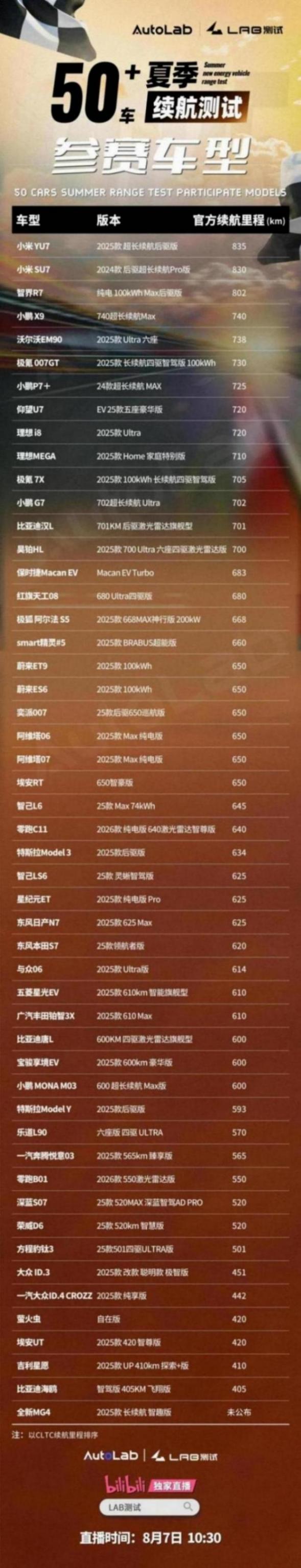 并且,我们全程会在B站《LAB测试》账号进行直播,每台车上也会有全程的记录,如果有疑问,可以随时翻开回顾。
