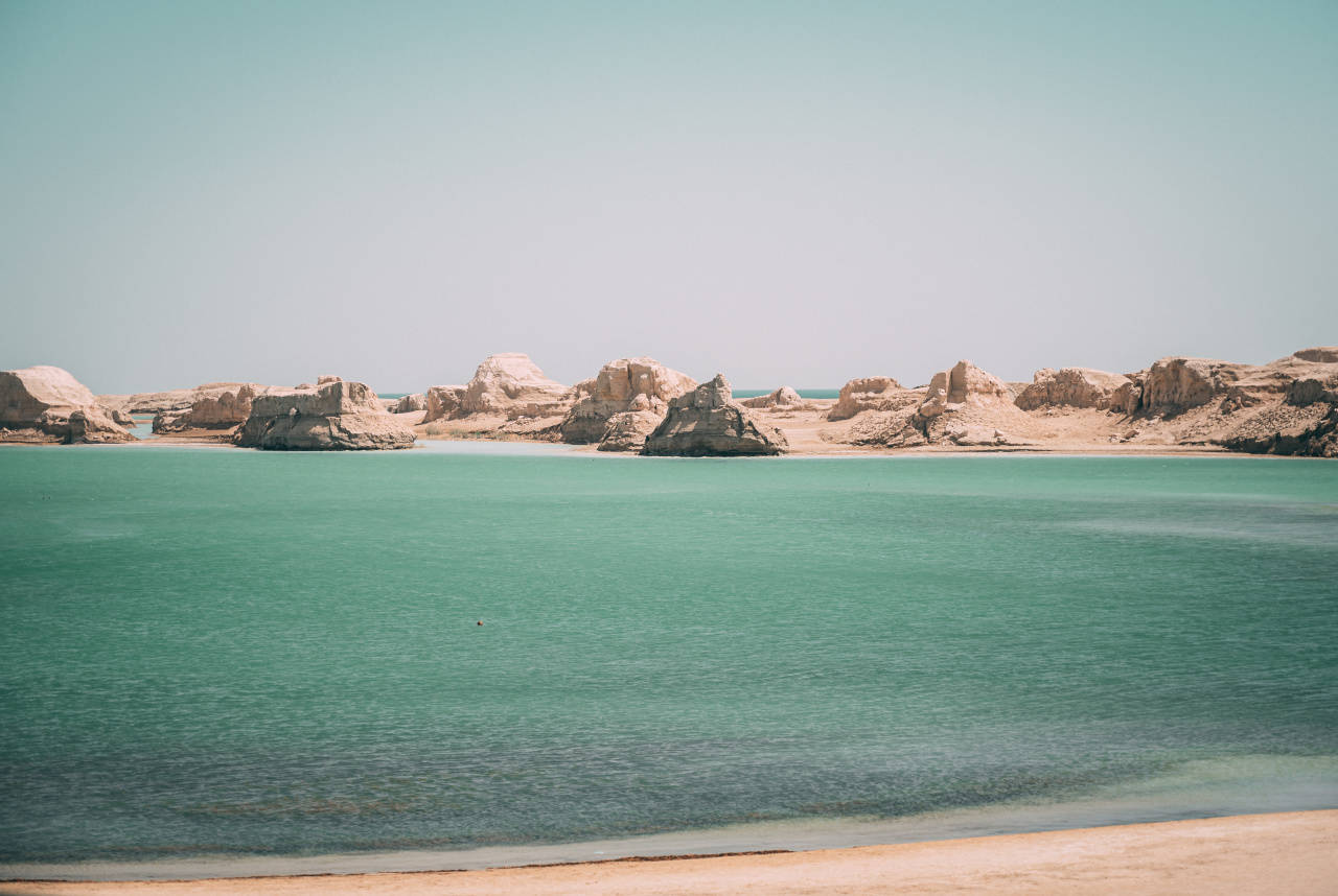 所以我们选择沿着315国道继续前行200公里,来到地处柴达木盆地腹地的西部台吉乃尔湖区,著名的水上雅丹景区便藏在其中。这里的湖水主要来自昆仑山的冰川雪水,而它也是地球上唯一的水上雅丹地貌区。