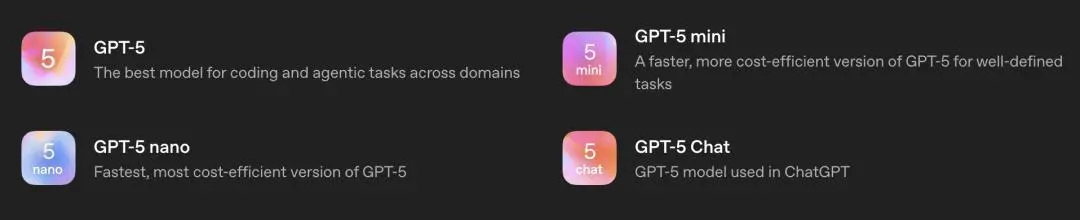 这次发布的GPT-5拥有四个版本:
