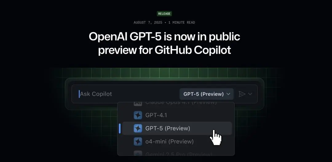 △GPT-5(Preview)已经上架GitHub Copilot。来源:GitHub