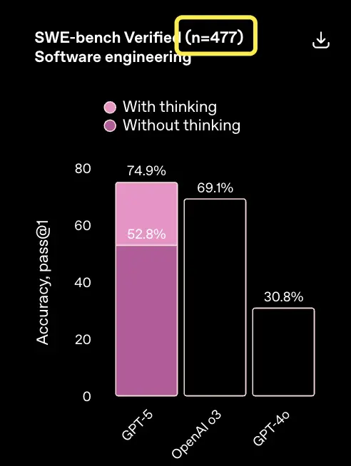 有人发现,官方测试编程能力用的SWE-bench Verified,但货不对板,只用了477个问题。