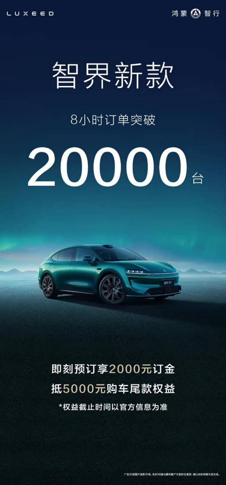 8月8日,智界汽车正式开启智界R7与智界S7新款车型预售。其中,智界S7预售价25.8万起,智界R7预售价26.8万起。不仅如此,智界还贴心推出2000元订金可抵5000元购车尾款的超值权益,目前展车已下线,即将于本周内进店,瞬间点燃了消费者的购车热情。据官方消息,开启预订后8小时订单就突破20000台。