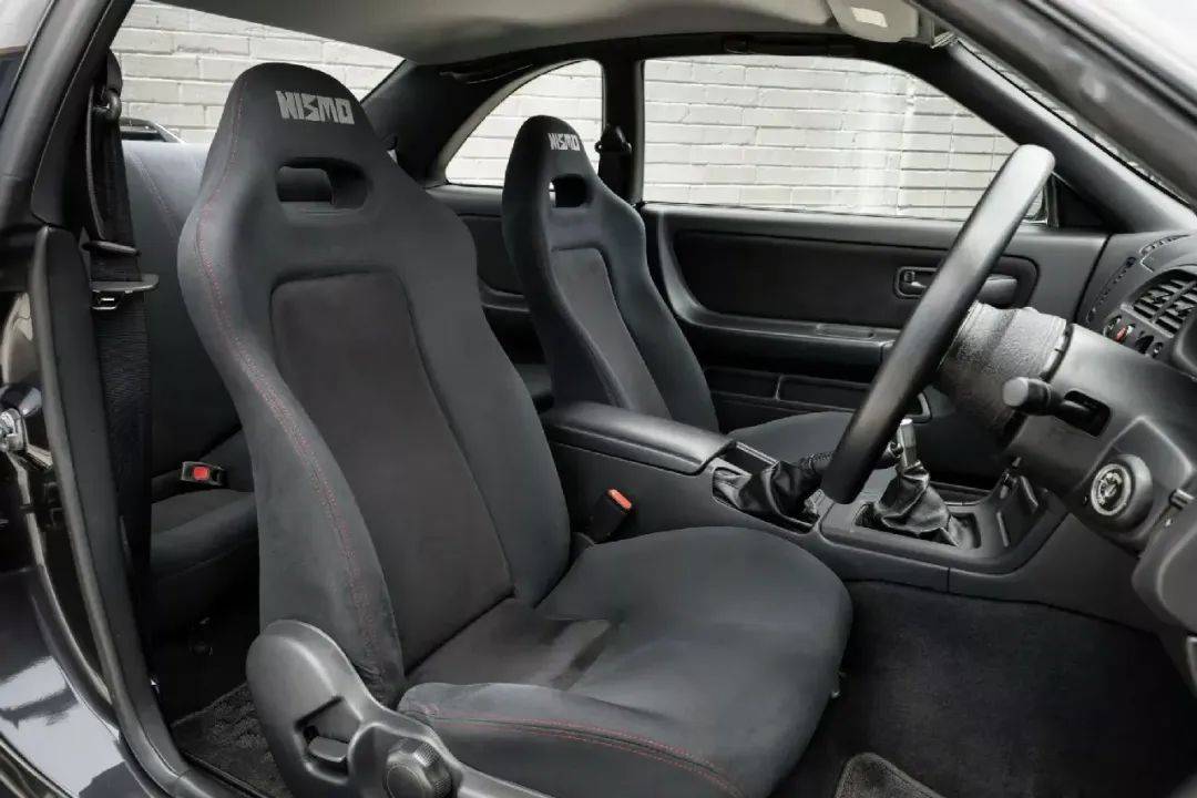 驾驶舱内保留了原厂的Nismo座椅,座椅侧面支撑充足,材质品质上乘。与之搭配的Nismo方向盘仅显露出极轻微的使用痕迹,进一步印证了这台车极少上路行驶的特点。