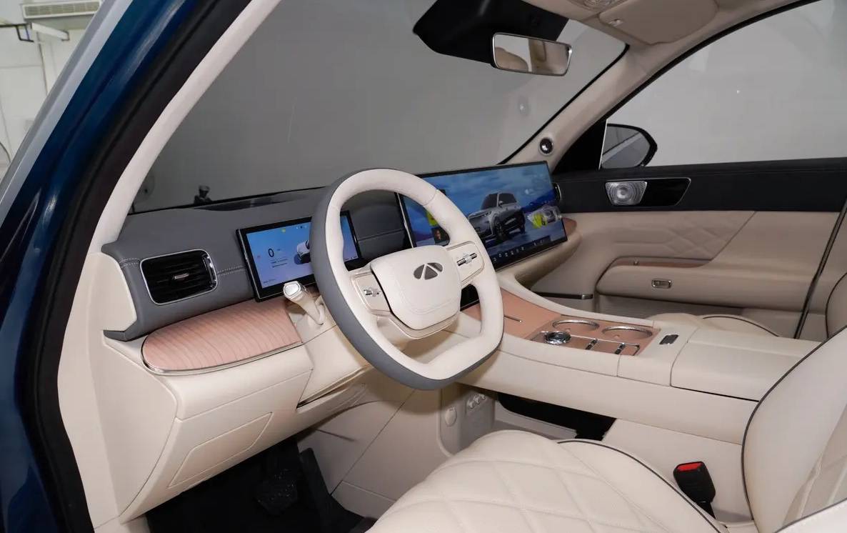 内饰上面,风云T11也有所谓的冰箱彩电大沙发。前脸的话,除了有一块液晶仪表盘,还有一块30英寸贯穿到副驾驶的联屏设计。这样的联屏设计,在奇瑞风云系列中还是第一次出现,或许是为了和理想那些造车新势力的车型去对标吧。