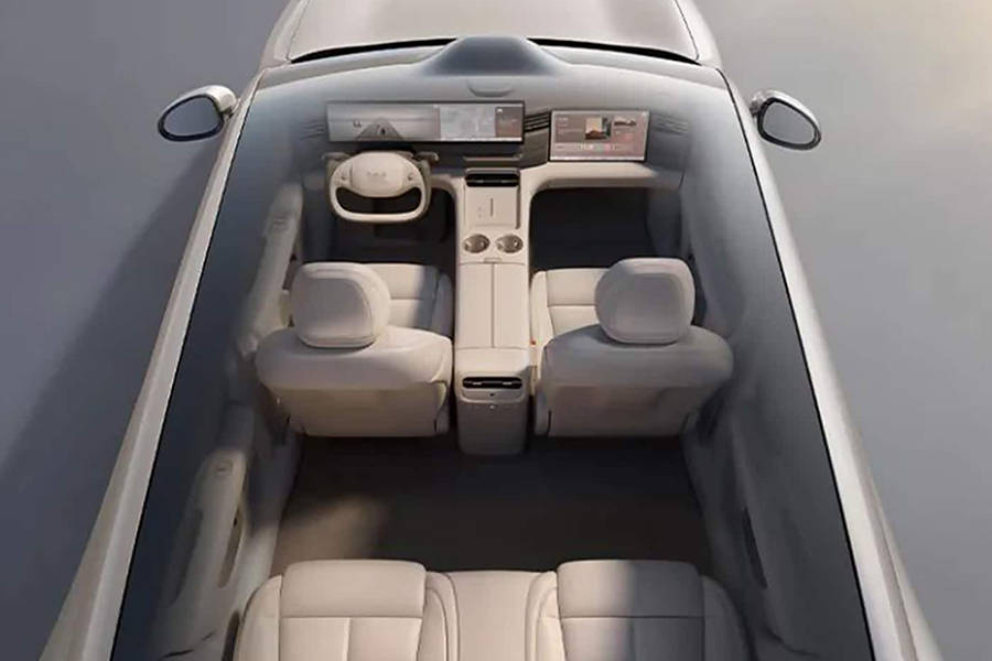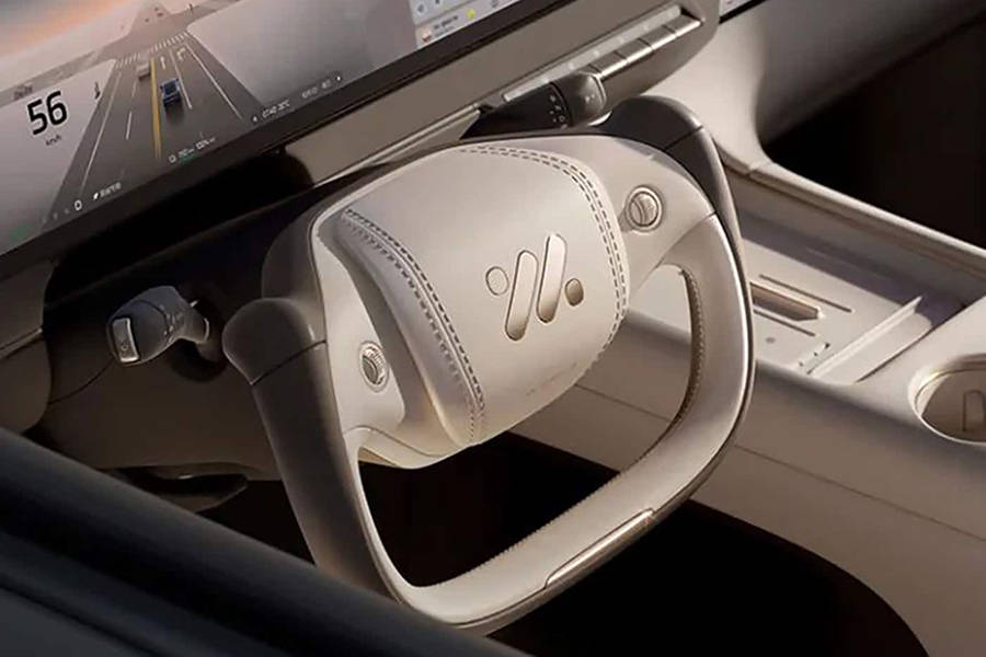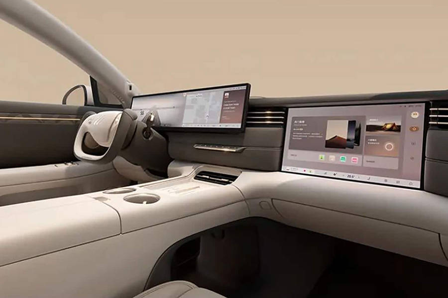 内饰方面,全新智己LS6依然采用三块屏,主驾与中控的5K高清屏幕贯穿相连,副驾娱乐屏为3K屏幕,整个台面很有层次感,空调出风口贯穿式设计,并展现出金属质感。此外,新车保留了一定的物理按键,屏幕下方依然为无线充电面板,下部提供储物空间,中控台上方提供悬浮式扬声器。值得一提的是,新车依然会提供半幅式方向盘。
