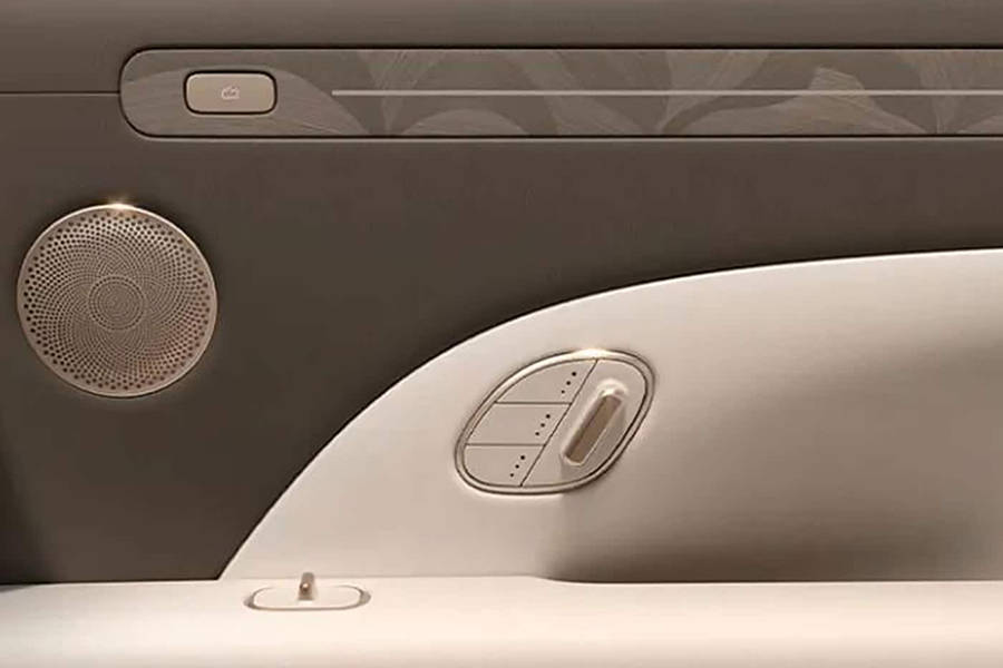 官方强调全新车型将提供超大的后排空间,并且还有全景天幕。车内整体注重细节的刻画与打造,车门有更加精致的纹理装饰、扬声器装饰,同时车门提供加热、通风等物理按键,更加便捷。