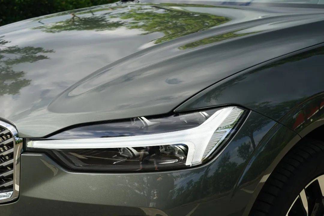 新款XC60 T8前脸的中网换成了对向斜纹式格栅 , 比现款的点阵式设计更加惊艳,标志性的雷神之锤前大灯,灵感源自北欧神话中雷神索尔的传奇武器“雷神之锤”,相传它能劈开混沌、驱散黑暗,为人类带来光明与勇气。