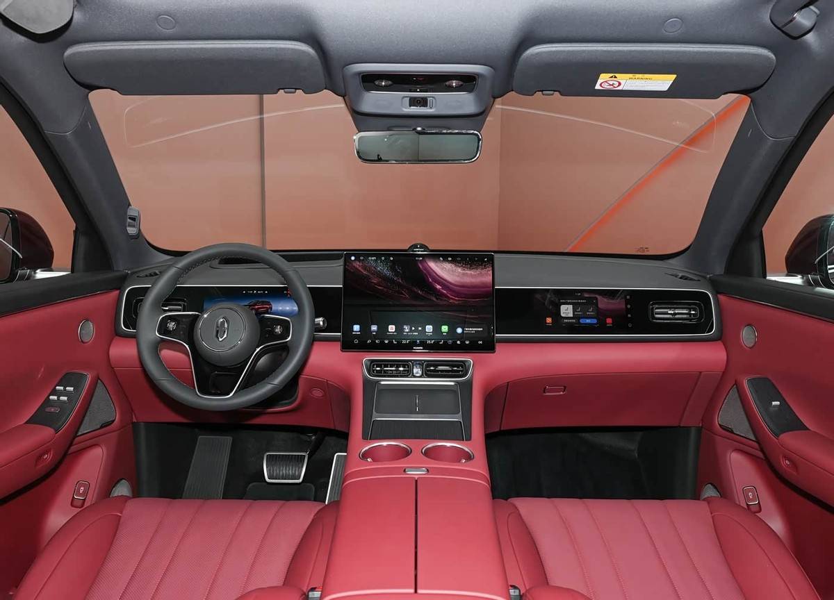 来到内部,新车换装了一块16.1英寸的中控屏,右侧还加入了副驾娱乐屏,主驾位置设计有全液晶仪表和AR-HUD,并有主驾零重力座椅;后排还引入了车顶娱乐屏和冷暖箱,科技感 舒适感拉满。