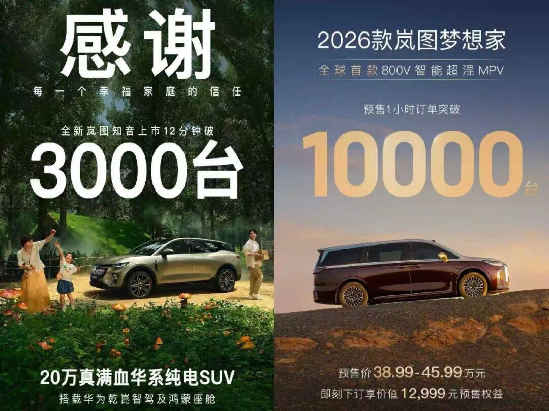 8月28日,全新岚图知音正式上市,12分钟大定破3000台。