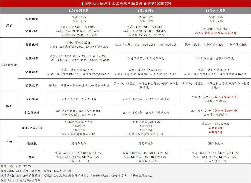 12月24日,北京市住房城乡建设委、北京市发展改革委、人民银行北京市分行、北京住房公积金管理中心等4部门联合印发《关于进一步优化调整本市房地产相关政策的通知》(以下简称《通知》),自2025年12月24日起施行。