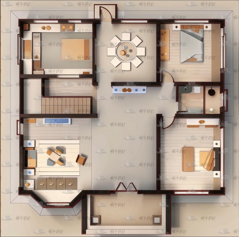 围绕房屋的160.13平米土地上,庭院与露台的巧妙规划成为一大亮点。庭院以绿植花卉装点,石质小径穿梭其间,营造出远离尘嚣的宁静氛围;露台则摆放有户外桌椅,成为享受午后阳光的绝佳之地。无论是品茶阅读还是家庭烧烤,都能在自然与建筑的和谐共生中,体会生活的惬意与美好。室外空间的设计,不仅增强了住宅与自然环境的互动,也丰富了居住者的户外生体验。