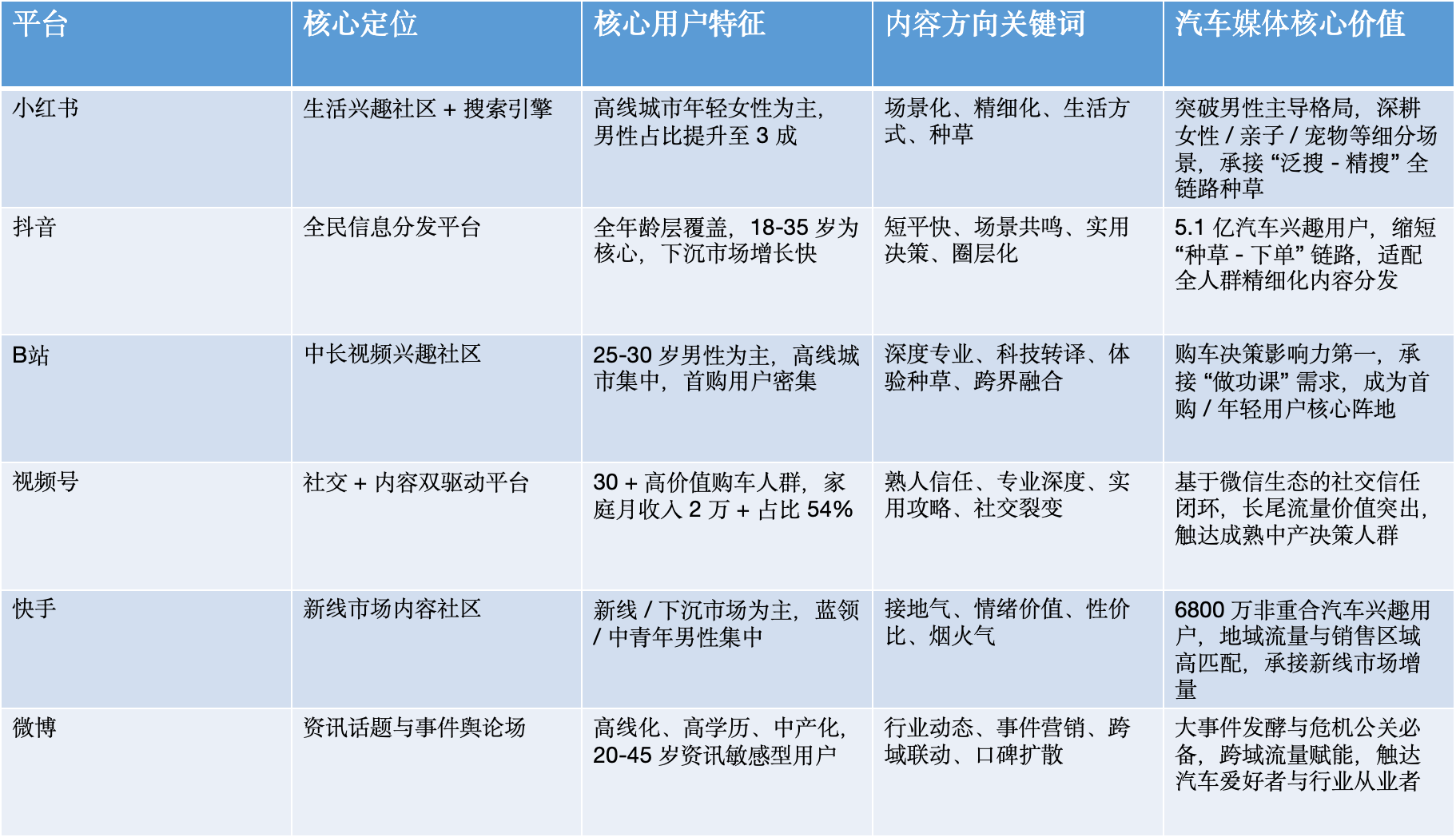 从以上对社交媒体的具体分析来看,社交媒体并非单一整体,不同平台的用户画像、内容偏好、使用场景截然不同。品牌也需要针对不同平台的用户特征定制内容,让内容在用户聚集的地方“适配生长”:如小红书的场景化种草、抖音的选购指南、B站的科技转译、快手的下沉市场共鸣、视频号的熟人社交背书等。