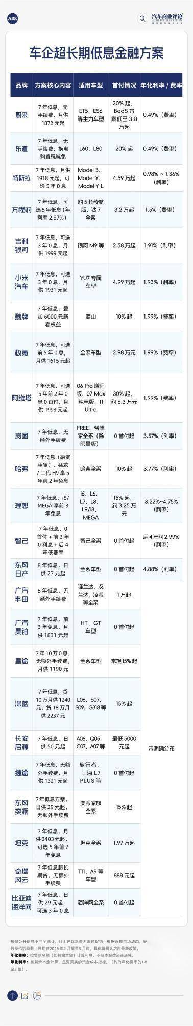 2026年开局,剧情悄然反转。往年你来我往的直接降价并未大规模发酵,取而代之的是近30家品牌集体入局“七年超低息金融战”。